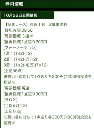 26日(日)東京1Rの馬連と三連単的中の口コミまだなかった!