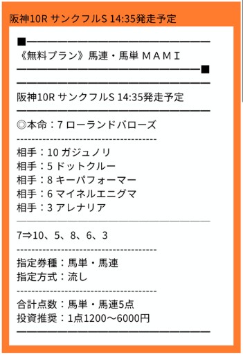 24日(土)中山10Rで単複の買い目点数1点ずつの無料予想で