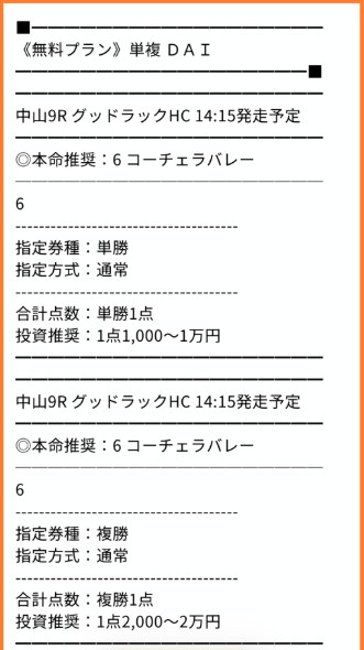 買い目点数1点のまさにトレンドど真ん中の無料予想を発見