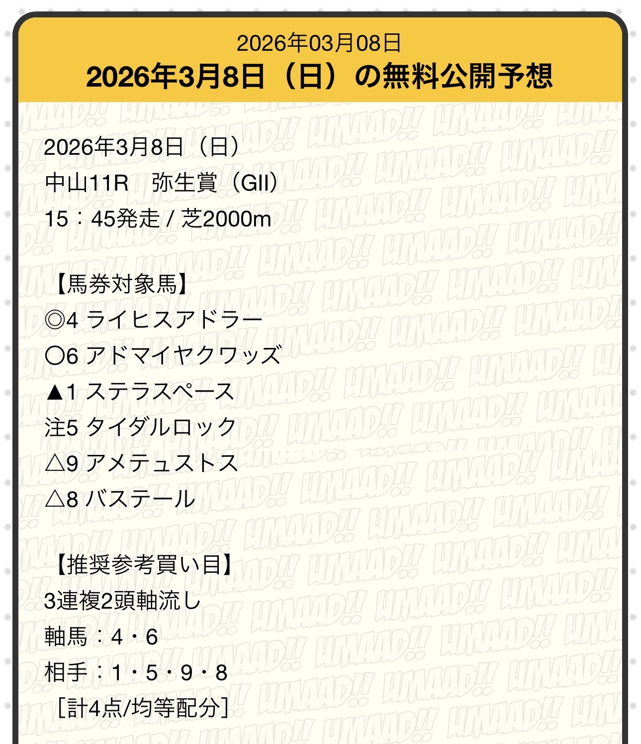 無料予想でここまでの買い目を出せるサイトはかなり優秀だと思います!