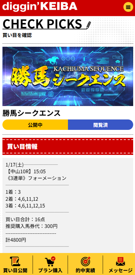 勝馬シークエンスの中山10R、1点300円×16点で35万8050円は熱い!穴の拾い方がハマった感あって次も期待する。