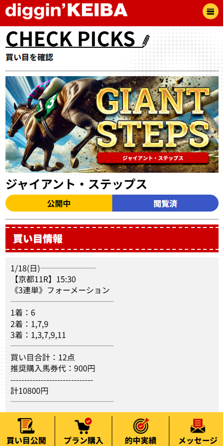 G2日経新春杯で三連単12点→配当45万8550円。ジャイアントステップは「必要なとこだけ押さえる」買い目で納得感があった。次も買う。