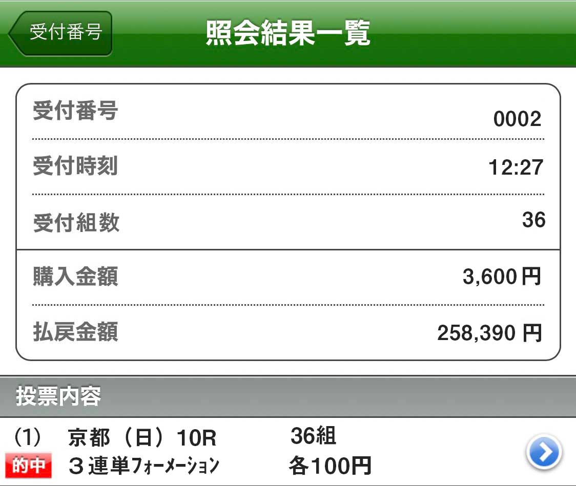 的中したもう1つのレースの的中即パット画像貼っておきますね!